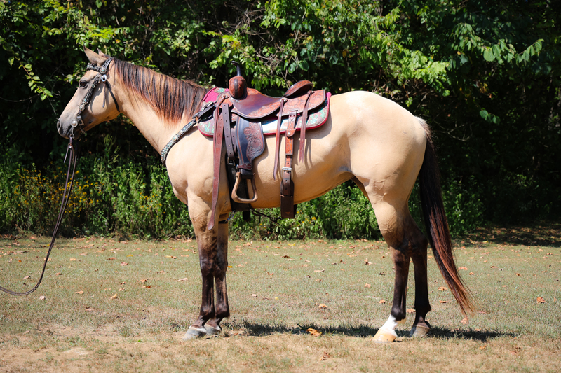 Not only is Daisy a seasoned competitor, but she’s also an honest and safe trail partner suitable for riders of all levels. She scores great, stands quietly, and handles herself with a calm and obedient temperament. Under saddle, she lopes smooth, balanced circles, catches her leads, stops hard, and backs willingly. Her turnaround is correct and responsive, and she rides comfortably off seat and leg cues. Daisy also side passes with ease and is handy enough to open and close gates, making her just as useful on the ranch as she is in the arena.